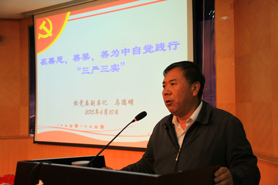 根据校党委工作部署,6月10日,校党委副书记马德明、副校长扎布、王锋、许存宁分别为分管部门、联点单位和教学院系的处级干部及党员教职工代表作了“三严三实”专题党课报告,为示范引领学校各院系级党组织书记上...11 2015-06 -