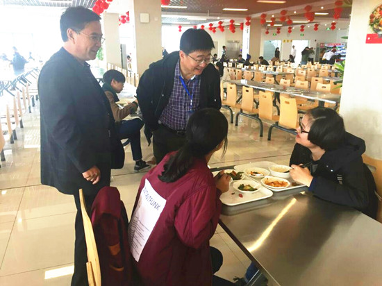 11月4日中午,校党委副书记梅岩根据学校学生工作会议反映的意见和建议,带领学生工作处相关人员到学生食堂进行调研。 调研中,梅岩副书记先后来到一、二楼学生食堂和清真餐厅深入了解学生食堂服务情况,并就学生...06 2016-11 -