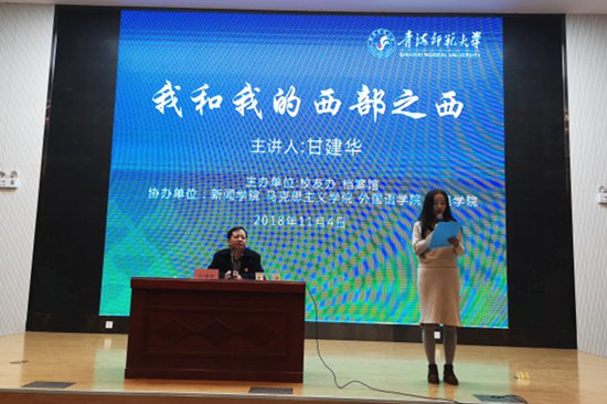 甘建华校友为威尼斯官网师生作《我和我的西部之西》主题演讲