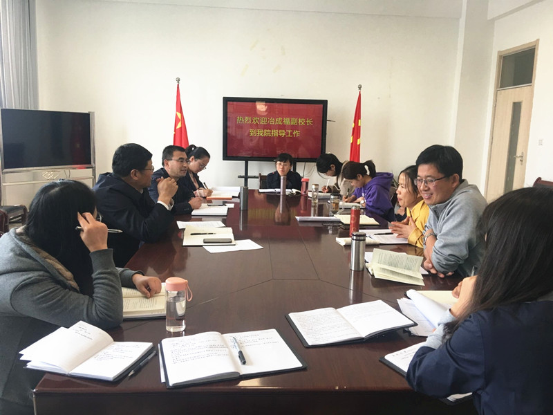 在认真听取汇报后,冶成福对学院目前开展的工作给予了肯定,并对学院的下一步工作提出了要求。他指出,目前学院要做好三项主要工作:一是做好博士点申报工作,上下一心解决申报工作工作中存在的问题。有好学科就有好专业,好学科是土壤,只有好的土壤才会孕育好的庄稼,办好的专业;二是做好师范专业建设,以卓越教师培养项目为抓手,在做好基础工作的同时要做强做精数学师范专业;三是加大力度推进《高等数学》公共基础课程的教学改革。