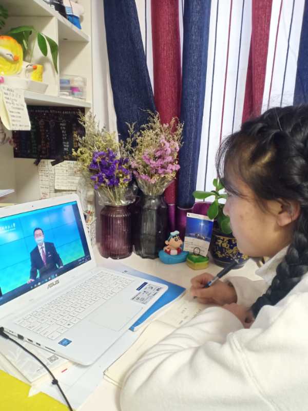 开讲第一堂思政课,鼓舞学子信心。3月1日晚,毛学荣书记通过腾讯课堂,为全校学生开讲“开学第一课”,勉励同学们积极响应号召,安心在家居守,认真做好了个人和家人的安全防护。他代表学校党委,向广大学生提出了同心同向,做爱国奉献的践行者、求真明理,做勤学奋进的先行者;知行合一,做笃实有为的修行者三点希望。全校辅导员、班主任及学生一万余人在线观看了直播。