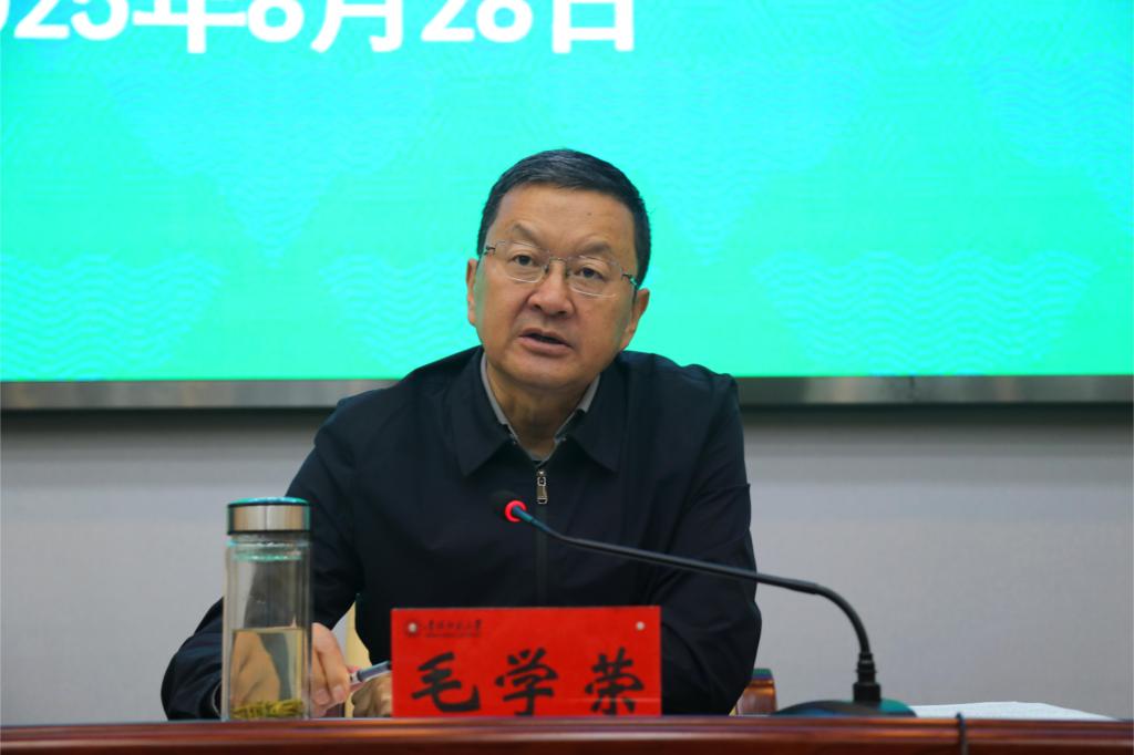 毛学荣在讲话中对抓好重点工作任务提出要求,一是扎实推进巡视整改工作,将巡视整改和学校中心工作结合起来,全面落实整改任务。二是持续深化学习教育成果,健全完善长效机制。三是持续推进专项整治,以刀刃向内的精神和严的标准推进管党治校。四是压紧压实主体责任,推动全面从严治党向基层延伸、向纵深发展。五是加强作风建设,切实整治形式主义为基层减负。六是强化学科专业建设,健全学科专业动态调整机制。七是抓好“十四五”规划总结、“十五五”规划编制工作,系统谋划学校“十五五”时期的总体思路、重点任务与进度安排。八是抓好安全稳定工作,为新学期各项工作顺利有序运行提供保障。九是抓好工程项目推进工作,缓解师生住宿、教学科研空间短缺问题。十是抓好财政专项执行进度,确保达到预算序时进度要求。十一是抓好毕业生就业工作,不断提高就业工作质量,全力促进毕业生更加充分高质量就业。十二是抓好建校70周年庆祝活动筹备工作,强化校史文化育人功能,汇聚发展动能。十三是抓好开学初相关工作,认真上好“开学第一课”,统筹做好新生入学工作,精心组织新入职教师培训。