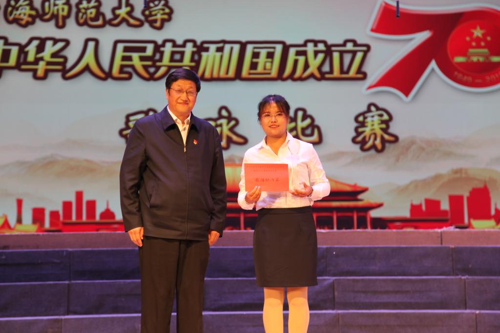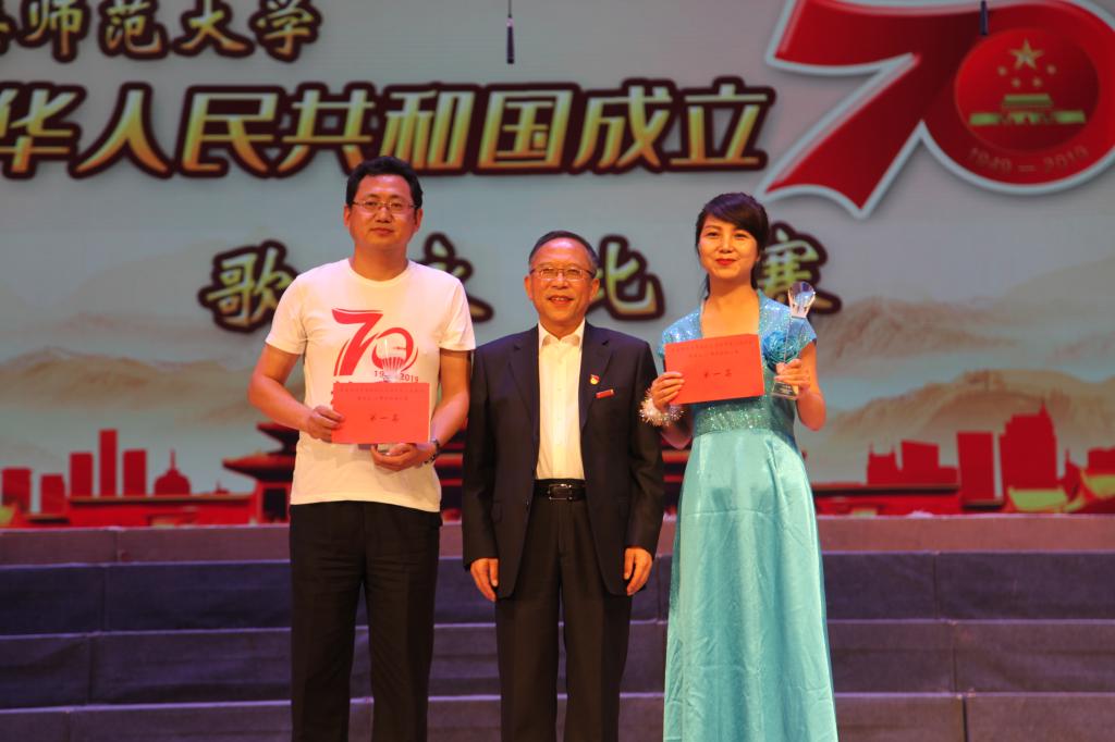 比赛伊始,校党委书记张雄伟致辞。他指出,70年来,中国共产党团结带领全国各族人民,沿着中国特色社会主义道路砥砺前行,实现了从站起来到富起来再到强起来的伟大飞跃,取得了举世瞩目的历史性成就,中华民族正以前所未有的自信和自豪巍然屹立在世界民族之林。伴随着共和国铿锵前进的发展步伐,我们的学校也实现了前所未有的巨大飞跃。学校党的建设全面加强,教育教学综合改革不断深化,人才培养质量持续提升,师资队伍结构不断优化,教育部帮扶学校走上了加快发展的快车道,思想政治教育不断缔结新成果,爱国主义主旋律唱响了青青校园,大学生创新创业能力和就业率不断提升,校风学风教风建设迈上新高度。他希望广大师生继续团结一心,用更加高昂强劲的决心和自信建设师大、发展师大。
