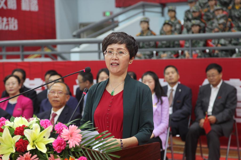 外国语学院刘海云教授作为教师代表在发言中深情寄语新生,在大学期间要积极思考,培养创新思维,博学厚德;要学会选择、学会包容、学会管理时间。