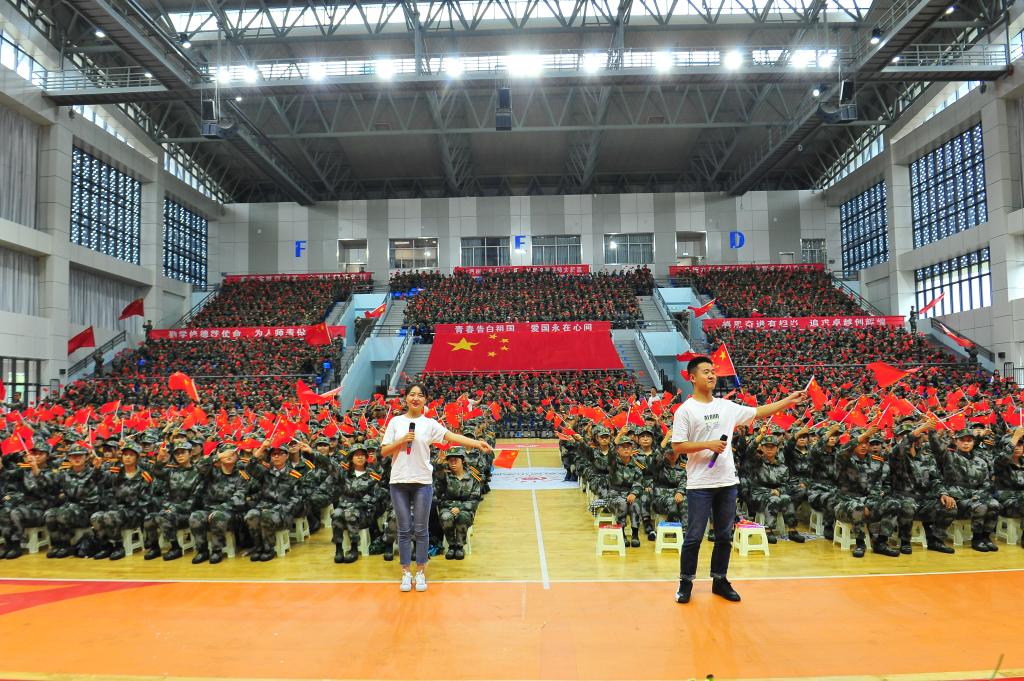 在雄壮有力的国歌声中,2019级新生开学典礼暨军训动员大会拉开帷幕。