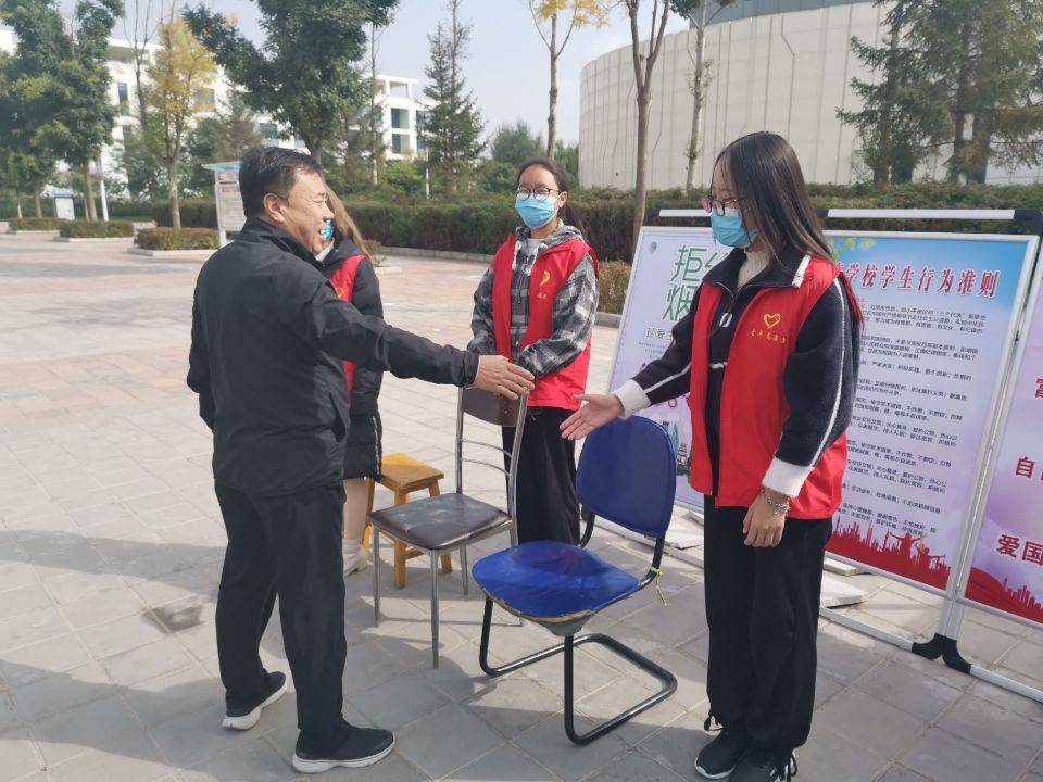 按照学校国庆期间疫情防控常态化的统一部署,马德明到校门口慰问了学生工作处值班人员和志愿者以及明德物业保安人员,检查了学生返校测温、绿码、行程等疫情防控相关要求的落实情况。