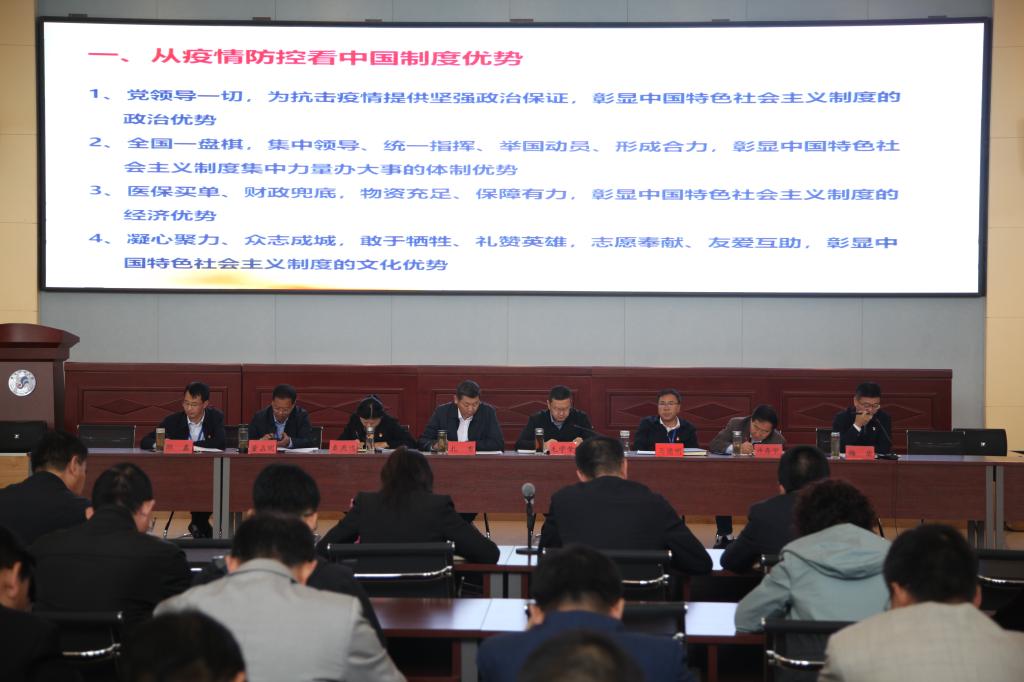 会议邀请马克思主义学院霍霞副教授做了题为《在“战疫大考”中彰显“中国之制”的优势》的十九届四中全会精神专题辅导报告。与会成员结合2020年初的疫情防控,对全会中坚持和完善中国特色社会主义制度、推进国家治理体系和治理能力现代化作出的重大战略部署进行了再学习、再领悟。