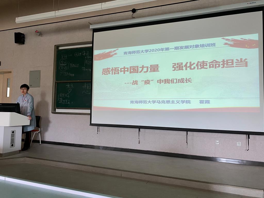培训期间,马克思主义学院副教授霍霞以“强化使命担当 感悟中国力量——战‘疫’中我们成长”为主题,从习近平总书记指挥防“疫”日志,看中国战“疫”方略,感悟中国力量,教育引导青年人在困难面前应直面战场、不畏惧,牢记中国共产党的使命与担当,坚定信心跟党走,筑牢思想的根基,加强思想道德修养,以实际行动争取早日入党。马克思主义学院教授薛生海以“新时代铸牢中华民族共同体意识”为主题,从中华民族的概念出发,讲述了铸牢中华民族共同体意识是实现中华民族伟大复兴的重要保障,也是实现中华民族伟大复兴的重要象征,新时代各族人民应始终紧紧团结在一起,培育中华民族大家庭同心同德、守望相助的文化认同意识。马克思主义学院教授崔治忠从五个方面阐释了十九届四中全会精神,从13个方面的显著优势阐明了“中国之治”制度“密码”,使发展对象深刻地体会到了中国特色社会主义制度的优越性和生机活力,认识到树牢“四个意识”,坚定“四个自信”,坚决做到“两个维护”的重要意义。