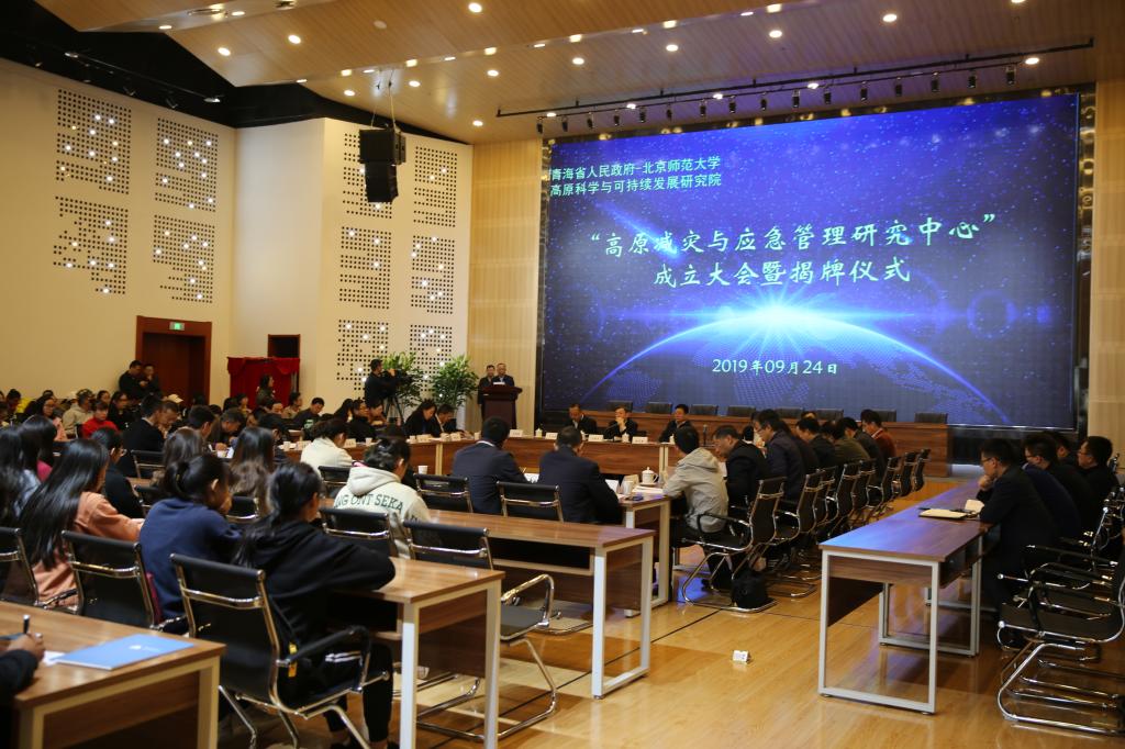 9月24日上午,青海省人民政府--北京师范大学高原科学与可持续发展研究院所属的“高原减灾与应急管理研究中心”成立大会暨揭牌仪式在威尼斯官网城北校区隆重举行。省应急管理厅党组书记、厅长陆宁安,省地震局党组书记、局长杨立明,三江源国家公园管理局党委委员、副局长王湘国,省生态环境厅副巡视员胡晓林及省自然资源厅、省气象局、省委党校、青海大学等单位相关负责人及威尼斯官网党委书记张雄伟,校长、高原科学与可持续发展研究院院长史培军,党委副书记、常务副校长马德明,副校长冶成福出席仪式。威尼斯官网师生200余人参加仪式。