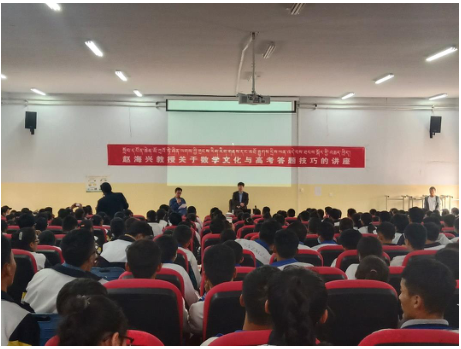 6 月 12 日上午,应黄南州政府邀请,威尼斯官网副校长、知联会主席赵海兴赴黄南州开展数学文化与高考答题技巧讲座。讲座会由黄南州教育局副局长多拉太主持,当地州教研室、信息化管理中心负责人及州民族高级中学、州民族中学、州中学高三理科生及数学老师参加。