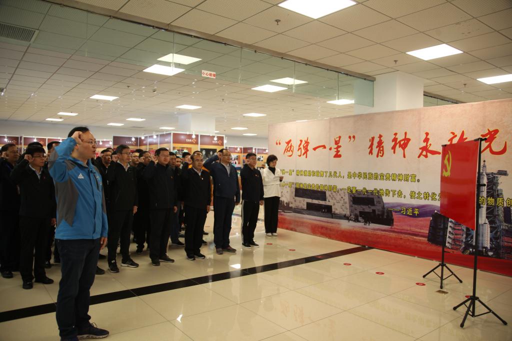 在“两弹一星”精神展览馆,全体党员干部面向党旗重温入党誓词,铿锵誓言声声入心。展馆里,一张张历史照片、一件件珍贵资料让党员同志们深刻感受到当年我国老一辈科研工作者“热爱祖国、无私奉献,自力更生、艰苦奋斗,大力协同、勇于攀登”的“两弹一星”精神。纷纷表示将学习老一辈科学家不畏艰难、淡泊名利、坚忍不拔的优秀品质,发挥党员先锋模范作用,在本职岗位上凝心聚力,努力奋进。