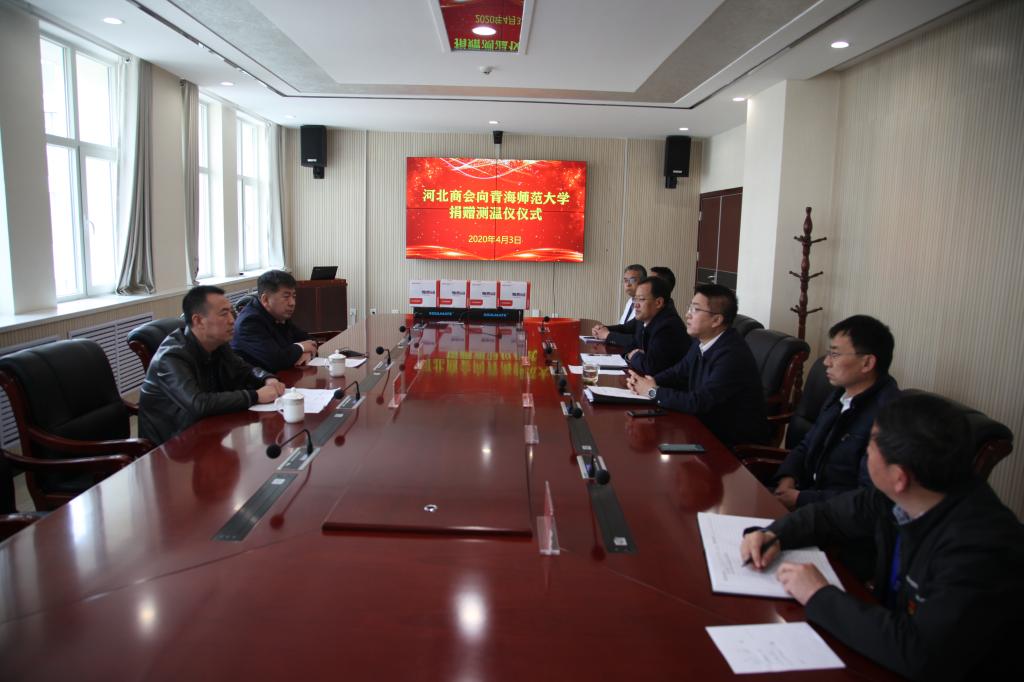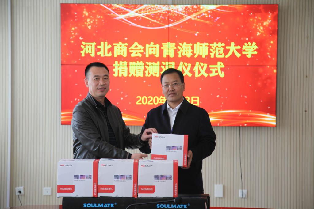 疫情无情,人间有爱。继3月18日,河北商会青海分会向省属高校各捐赠5套热成像体温筛查系统后,4月3日,河北商会青海分会又向威尼斯官网捐赠4套热成像体温检测仪。河北商会青海分会常务副会长周贵谦、副会长孟祥东及校党委副书记梅岩、副校长董占明出席捐赠仪式。仪式由梅岩主持。