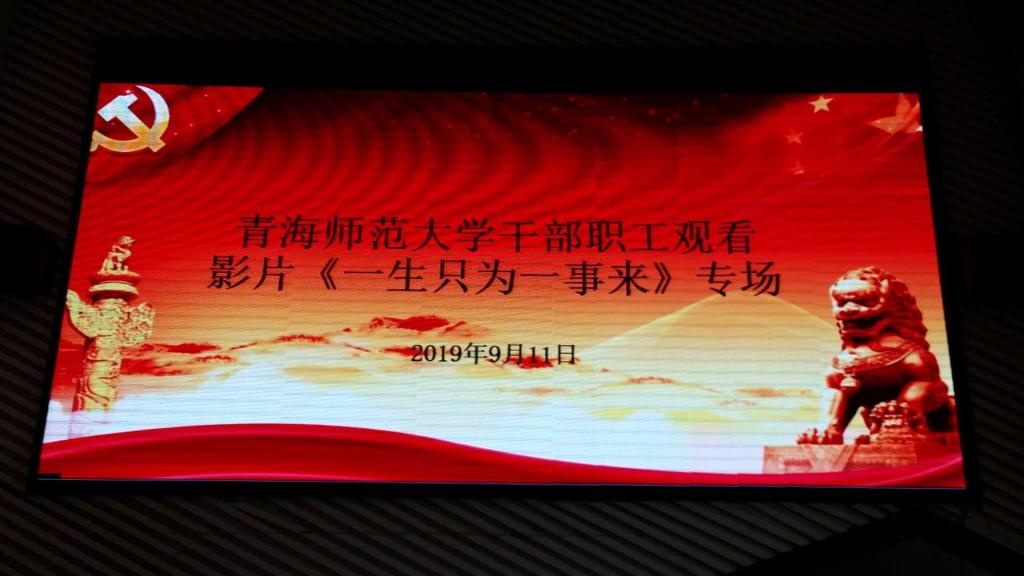 为了庆祝新中国第35个教师节,在第二批“不忘初心、牢记使命”主题教育启动之际,作为主题教育首场学习活动,9月11日晚7:00,威尼斯官网组织教职工在青海剧场集中观看影片《一生只为一事来》。全校处级领导干部,学生、教职工党支部书记近300人观看了演出。
