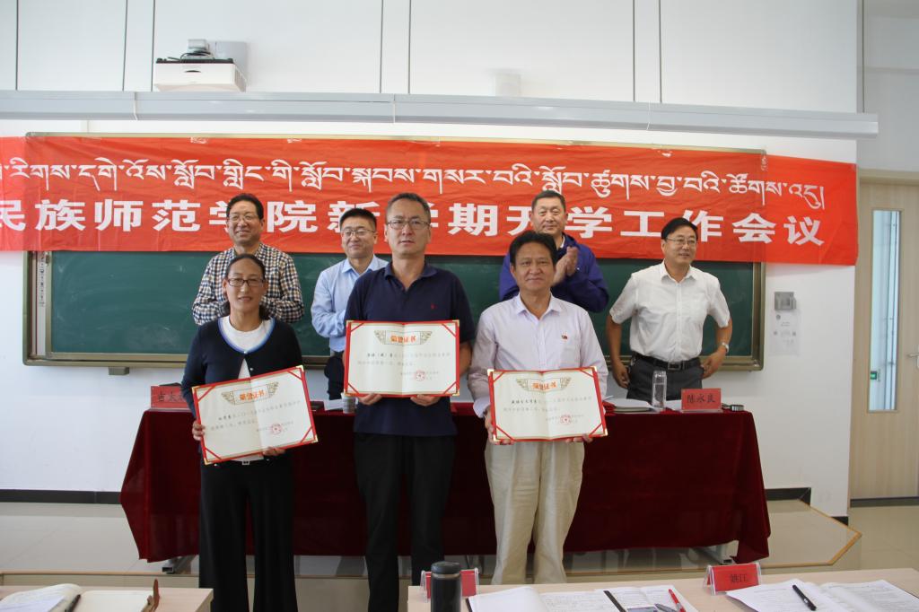 会上,首先集中学习了中共中央办公厅、国务院办公厅《关于深化新时代学校思想政治理论课改革创新的若干意见》精神;吉太加副书记全面总结上学期工作的同时,指出存在的主要问题和不足,同时还就新学期第一堂课、党建思政、意识形态工作、学生安全稳定等各项工作提出了相应要求。之后对校党委会审议通过的《民族师范学院党建质量提升工作方案》作了解读;陈永良副院长对校党委会审议通过的《关于完善本科教育教学工作实施方案》作了解读;随后会议表彰了教师教学技能竞赛、师德师风建设、人才培养质量综合素质测评等方面取得优异成绩的集体和个人,有3个集体11名个人受到表彰。
