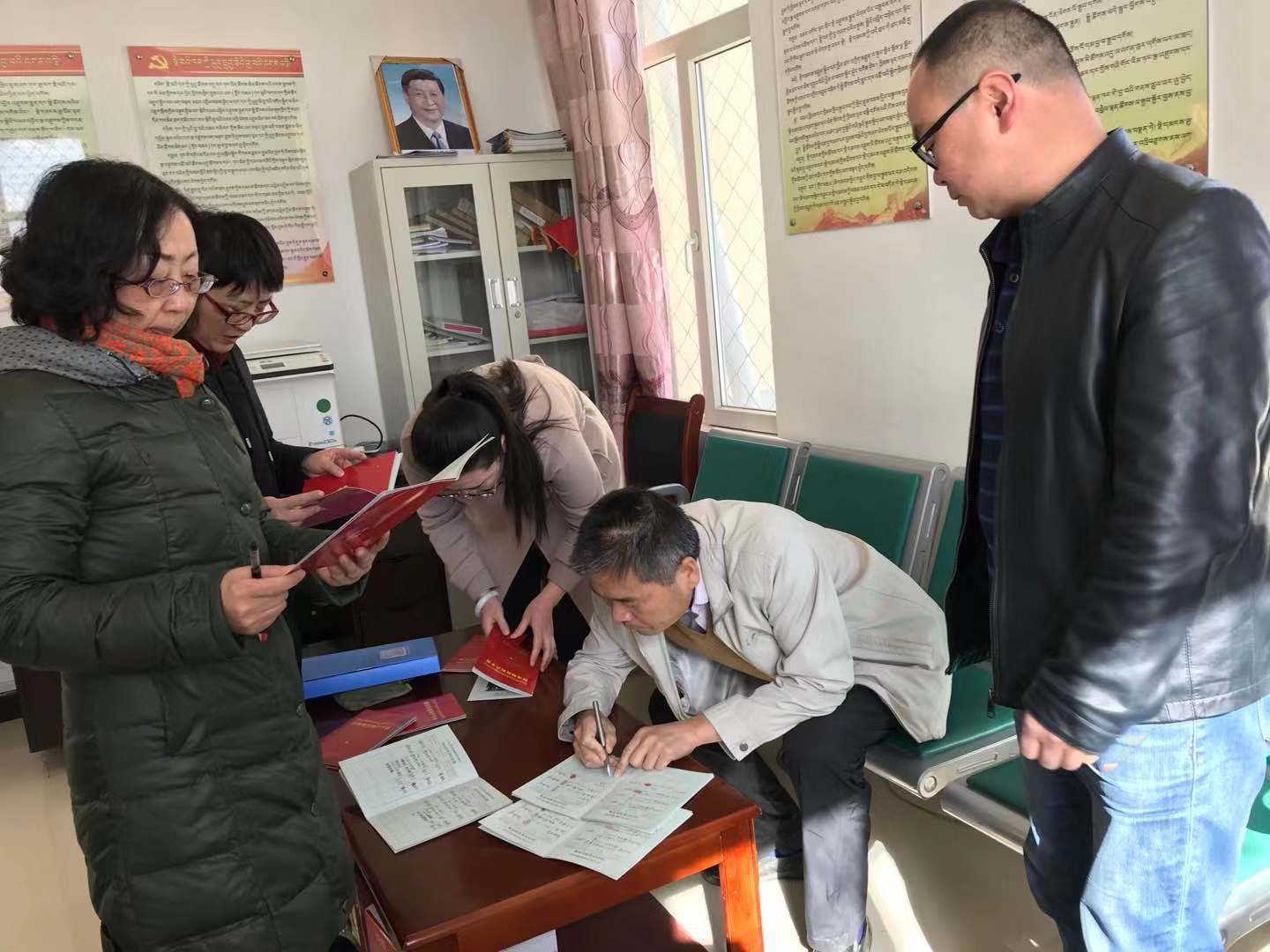 在廿地村,驻扎在当地的驻村干部首先召集了受助贫困户和学院教职工代表一起召开了交流会,就近期扶贫工作进展情况、每户家庭生活状况、子女就业就学情况等向学院教职工代表进行了详细的介绍。随后,教职工代表与受助家庭代表展开了面对面的交流,并与户主一同认真填写了“精准扶贫到户手册”,为每户贫困户送上了慰问金。
