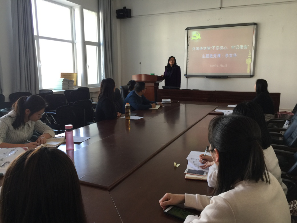 为深入学习贯彻党的十九届四中全会精神,进一步深化“不忘初心、牢记使命”主题教育,坚定理想信念,振奋民族精神,激励全体党员干部继承和发扬党的优良传统和作风,11月13日下午,外国语学院教工党支部开展了以“新时代爱国主义教育”为主题的党日活动。