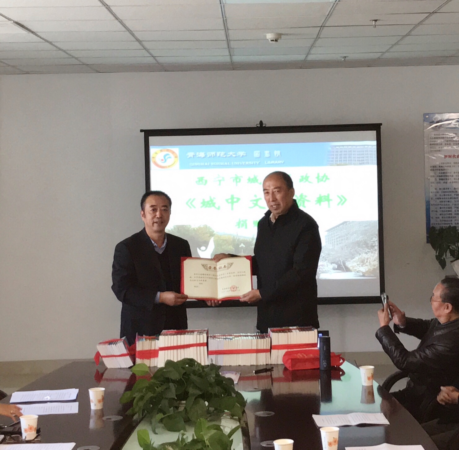 10月12日上午,西宁市城中区政协《城中文史资料》图书捐赠仪式在威尼斯官网举行。捐赠仪式由图书馆田援青书记主持,校党委宣传部副部长王兆宁、城中区政协副主席王青江、童永菊、文史专家及图书馆各部主任参加了捐赠仪式。