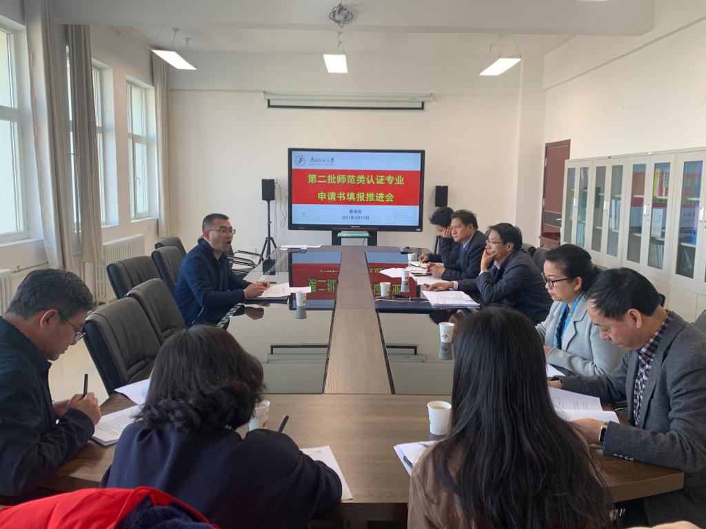会上,马俊首先就教育部公布《普通高等学校师范类认证申请书》(2021版)中新增加的评价机制进行了解读,随后各学院分别从申请书的前期准备工作、材料的撰写、存在的困难等方面进行了汇报。