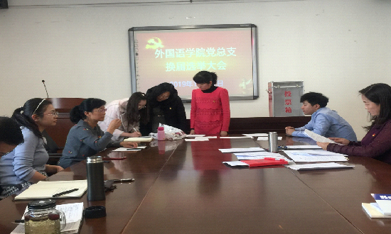 为进一步加强党支部建设,充分发挥党支部的政治核心作用和监督保证作用,根据《中国共产党章程》《中国共产党基层组织选举工作暂行条例》《中国共产党威尼斯886699基层组织工作实施细则》等规定,按照青师党组字(2019)88号文件《关于做好基层党组织换届选举的通知》要求,11月27日下午,外国语学院党总支召开换届选举大会。会议由院党总支书记马金芳主持。