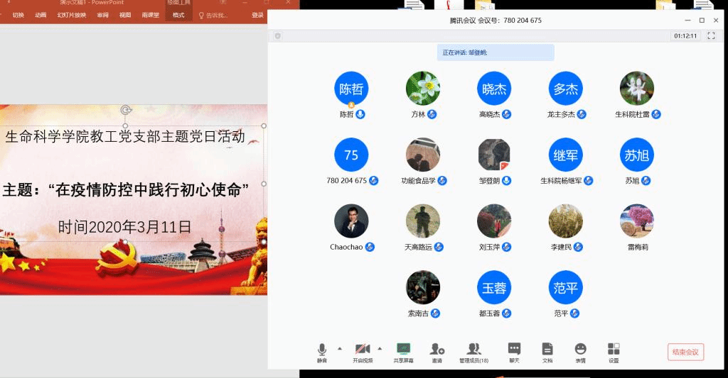 为进一步发扬并做实做细做好党员教师在疫情防控阶段中教育教学工作的战斗引领,充分发挥党支部先锋堡垒作用,生命科学学院教工党支部按照校党委组织部关于组织开展“在疫情防控中践行初心使命”主题党日活动通知的要求,于3月11日下午采取线上会议形式,组织全院教师党员召开了相关主题党日活动。