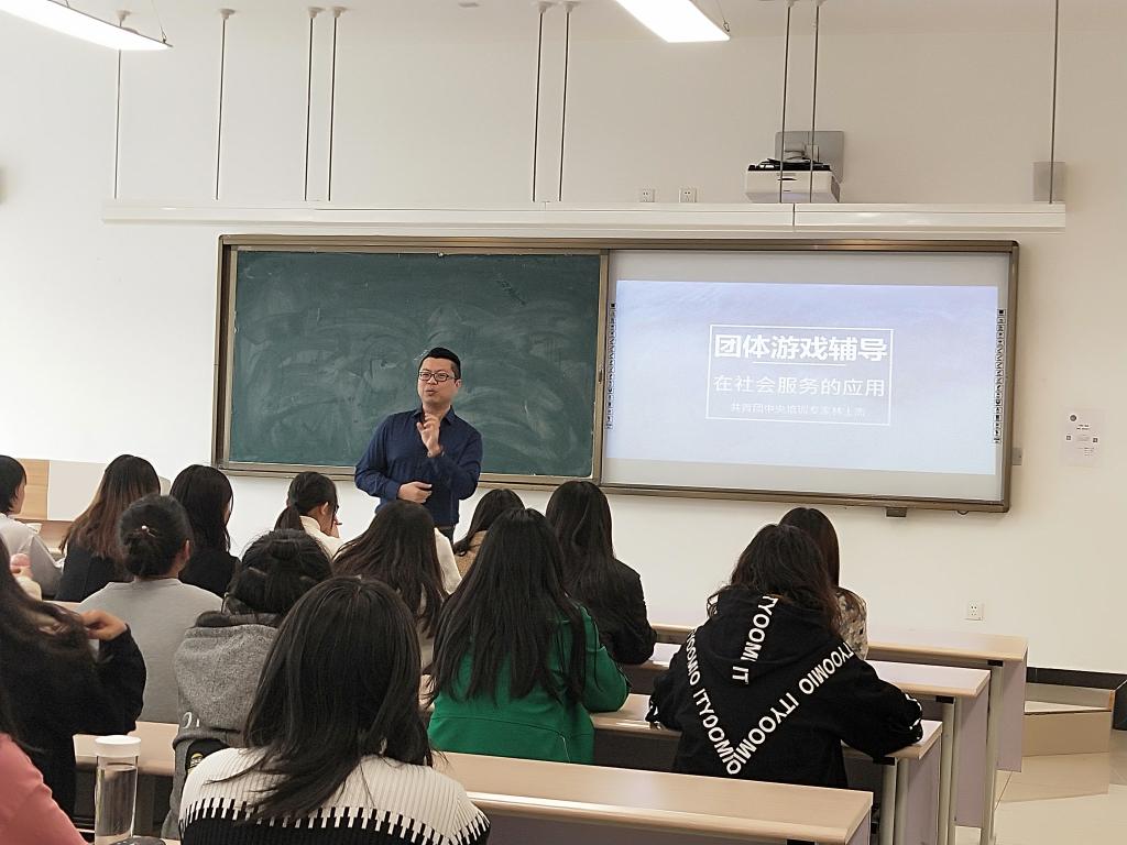 11月6日下午,法学与社会学学院邀请共青团中央培训专家林士杰在东一楼202教室做了《团体游戏辅导在社会服务中的应用》主题讲座,青海省儿童福利协会会长田延英、办公室主任王义涛及学院社会工作专业本科生参加了讲座,讲座由学院社会工作教研室主任裴敏超副教授主持。