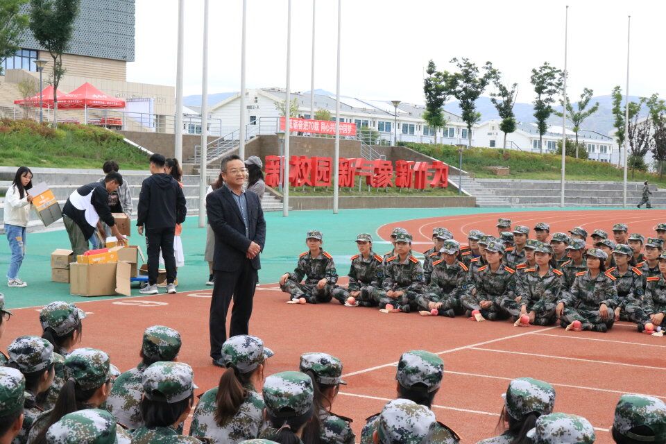 院领导首先与各位教官一一握手交谈,了解学院新生训练和管理情况。看到同学们队伍整齐、精神饱满,老师们都发出由衷的赞叹,并向教官表达了真诚的谢意。在走访过程中,老师们给每个同学都发放了慰问品以表达对新生的关爱。每到一个班级,老师们都亲切地与新生交谈,仔细询问入学后的感受、对新环境的适应状况及在生活中遇到的困难,并勉励大家要认真上好军训这个大学第一课,向教官学习军人的优秀品质,继续保持积极向上的精神风貌,听从指挥,增强体质,砥砺意志和品格,为大学新征程和人生新起点奠定坚实的基础。