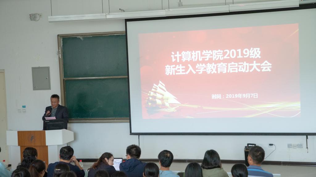 9月7日下午,计算机学院举行了19级新生入学教育启动大会。党总支书记谢锟代表学院致词,对新生的到来表示热烈地欢迎,并对新生提出了期望和要求。他希望同学们有理想、有目标、有底线,会做人、会学习、会生活,常怀感恩之心、树立奋进之志。随后,常务副院长耿生玲做了专业认知专题教育。她从学院的历史沿革、学科架构、办学特色、师资力量、科研成果等多个方面向新生介绍了计算机学院的基本情况,使同学们的心中荣誉感油然而生,激发出新同学“知专业、爱专业、爱学习、会学习”的钻研精神,坚定了新生的专业思想、提高学习的自觉性和主动性。副院长黄鹤鸣组织学习了学院的教育方案,对各项教育内容进行了明确,同时,他结合自身多年从教经历,从学习目标的建立、良好习惯的养成、职业生涯的规划等方面为新生答疑解惑传经送宝,引导同学们尽快适应大学生活。在启动仪式上,新老生代表分别发言,互相激励表明决心。