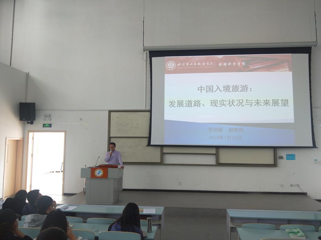 7月19日上午,北京第二外国语学院旅游科学学院李创新副教授应邀莅临威尼斯官网作了题为《中国入境旅游:发展道路、现实状况与未来展望》的学术报告,两百余名师生聆听了报告。
