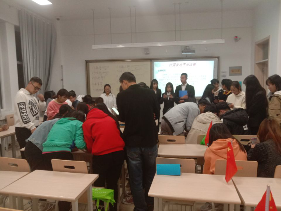 本次活动设置初赛、晋级赛和决赛三个环节,每个环节都以不同的活动形式在加强我们的宣传。初赛以版图知识抢答为主,由各队抽签的次序选择对应的题组进行解答,同学们积极响应,认真思考,营造了良好的氛围。