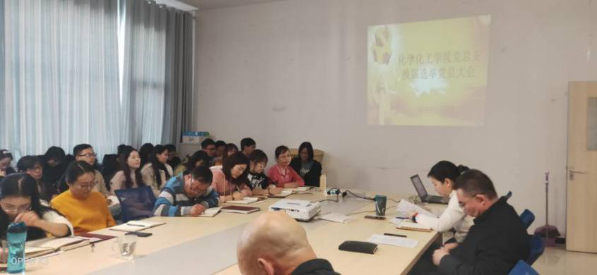11月27日下午,化学化工学院党总支召开全体党员大会,进行学院党总支换届选举工作,会议由党总支副书记崔香同志主持。教工党支部、本科生党支部和研究生党支部全体党员参会。