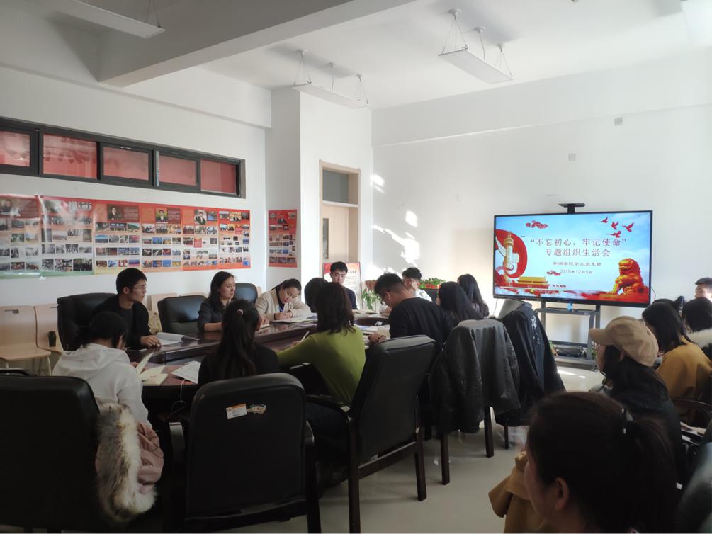 12月5日,新闻学院学生党支部开展“不忘初心、牢记使命”专题组织生活会。会议由学生党支部书记曹燕红主持,学生党支部全体成员参加会议,学院党总支副书记张晓婷及学院学生科相关负责人列席会议。