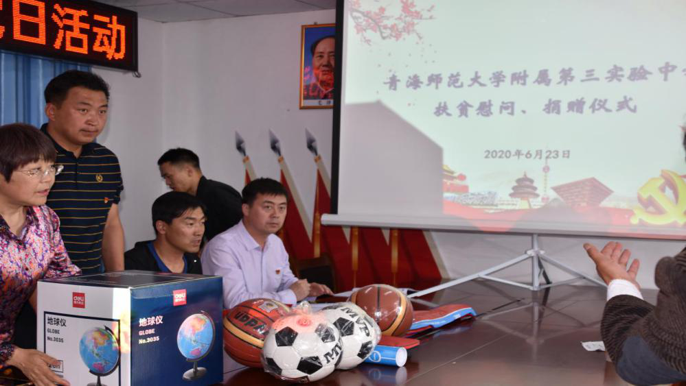活动结束后,张世平、邵志杰及教师代表分别向帮扶结对的好来村捐赠了地球仪、篮球、足球等文化用品。