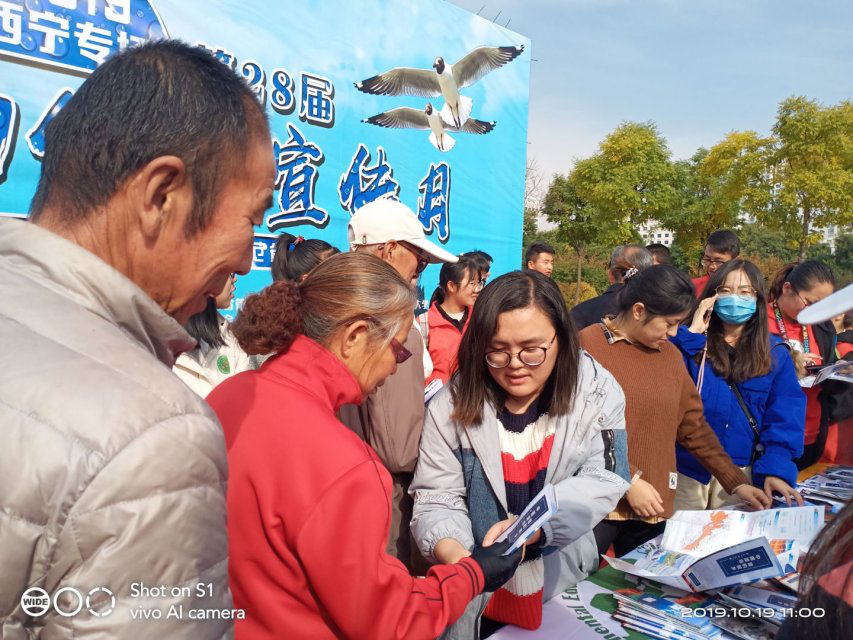 志愿服务者向广大市民发放常见的鸟类宣传手册,宣讲保护野生动物的意义,展示生态建设展板,科普机器人讲解,向现场的市民宣传青海野生动植物的相关知识,增强全民参与保护野生动物的意识。