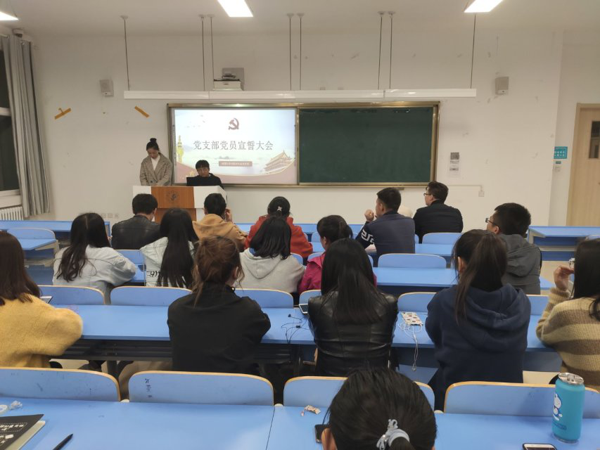 为加强同学们的爱国爱党意识,加深爱国情怀,培养同学们团结统一,爱好和平,勤劳勇敢,自强不息的伟大民族精神,并且为党吸收新鲜的血液,地理科学学院本科生党支部于10月13日举办了党员宣誓大会,参会人员有党支部吕晨清老师,辅导员杨永潇老师,部分学生党员以及学院部分入党积极分子。