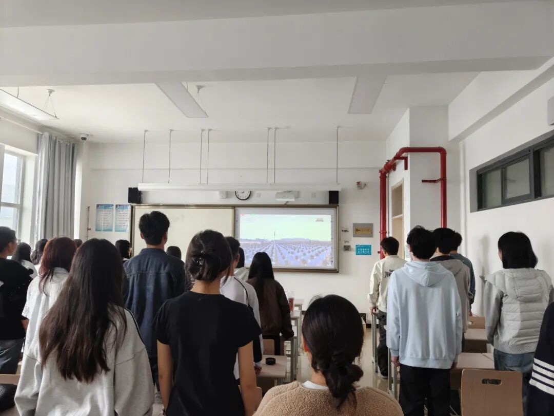 团员青年们集中在会议室、教室等地,怀着崇敬和激动的心情,通过电视、网络等渠道共同观看大会实况。当庄严的国歌响起,全体团员青年肃然起立,高唱国歌,向国旗致以最崇高的敬意。