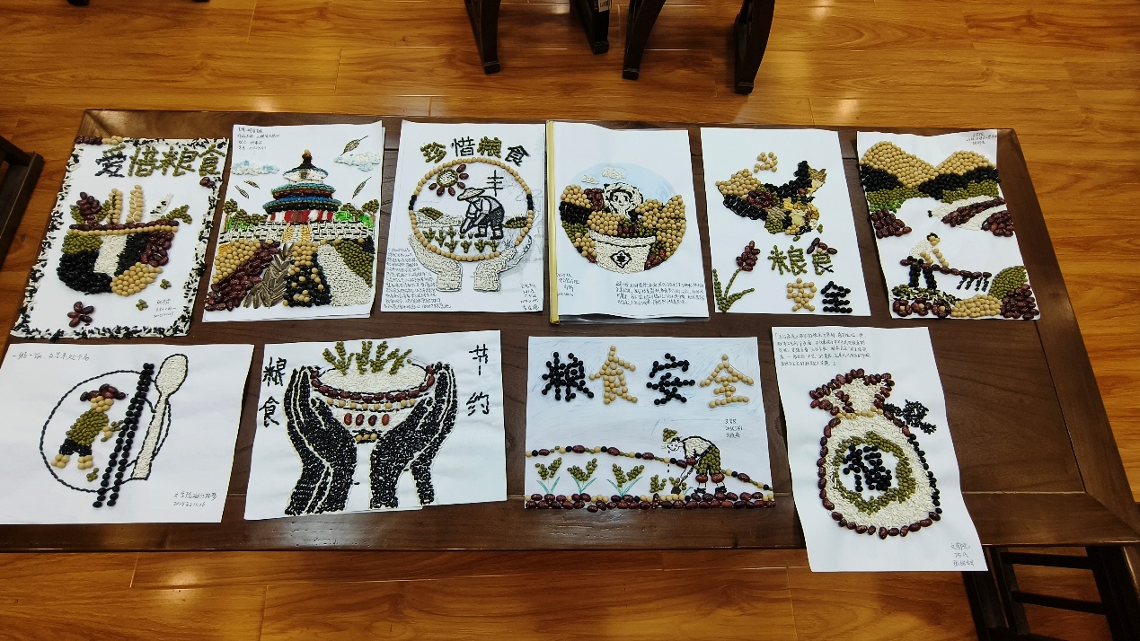 “五谷识韵,粮画传情”手工创作。该活动共发放杂粮材料包40余份,参赛者创作“粮食安全”主题粘贴画、立体粮艺装置等作品,部分作品以“青海本地粮食”为元素,凸显地域特色。活动巧妙将“粮食认知”与“艺术表达”相结合,作品展现了学生的创意与动手能力,通过“粮画”这一独特载体,将粮食安全主题转化为直观、生动的艺术语言。后续的线上展示环节,进一步扩大了活动影响力,让更多师生感受到“粮食之美”与“节约之重”,实现了“美育”与“粮食安全教育”的双重融合。