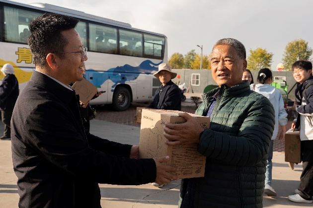 健步走活动结束后,在河畔广场慰问每位老同志,工作人员手捧重阳节慰问品,逐一送到他们手中。一句句真诚的祝福,一声声暖心的关怀,让老同志们脸上洋溢着幸福的笑容。