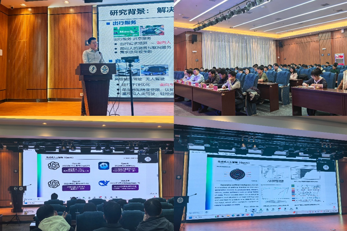 在学术报告环节,北京邮电大学特聘副研究员罗贵阳围绕智能网络、大规模智能机器通信与组网理论等方向,分享了通信-交通-人工智能交叉领域的研究成果;南京邮电大学桂林卿教授阐述了生成式AI在重塑多媒体行业、优化内容创作与传播等方面的核心优势及落地应用成效;成都索贝数码科技股份有限公司高级工程师杨瀚博士解析了WiFi、5G、毫米波通感一体等技术的多维度感知优势,以及复杂环境下成本受限场景中感知边界扩展的前沿探索。三位专家立足理论前沿、紧扣实践应用,结合研究成果深度解读学科动态,报告兼具专业性与启发性。现场师生围绕报告内容与自身研究方向踊跃提问,形成“提问—答疑—研讨”的良性互动氛围。